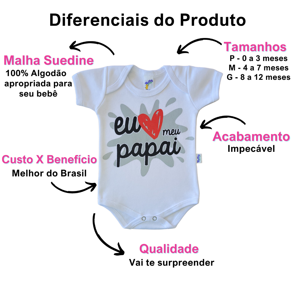 Body Bebê Eu Amo Meu Papai Frase Família Personagem Super Herói Bori 100% Algodão Calcinha Bunda Ric