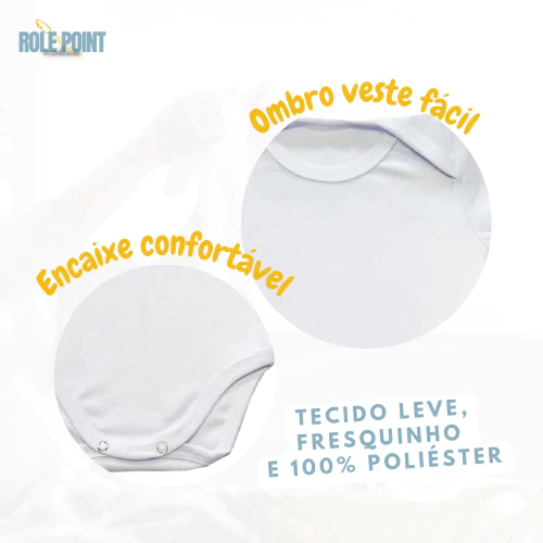Temos uma variedades de Bodys personalizados, um mais legal que o outro! E esse não poderia ser diferente. O Body é feito de tecido poliéster com elastano, super confortável e não causa alergia. Com o elastanao a peça se estica e se molda ao corpinho do bebê. Ainda possui 2 botões na parte de baixo que facilitar na hora da troca. A gola estilo americana facilita a passagem da cabeça do bebê e se molda facilmente nos ombrinhos da criança. As estampas são feitas com a técnica de sublimação, deixando a estampa a toque zero, a tinta é fundida no tecido a mais de 200º de temperatura. Com isso mantém as cores bem vivas e não desbota, mesmo após várias lavagens AS MEDIDAS PODEM VARIAR 2cm PARA CIMA OU PARA BAIXO. Tabelas de nossas Medidas: Altura x Largura BODY PARA BEBÊS (Unissex) ------------------- Altura x Largura P - 36cm x 20cm M - 38cm x 22cm G - 40cm x 24cm GG - 42cm x 26cm