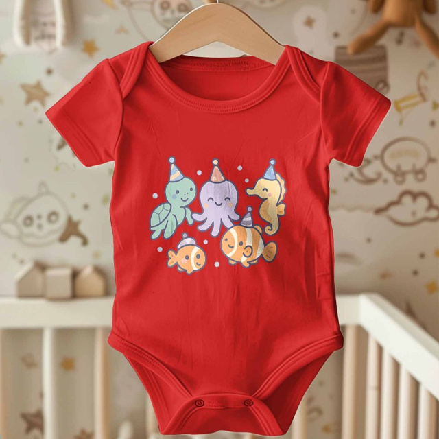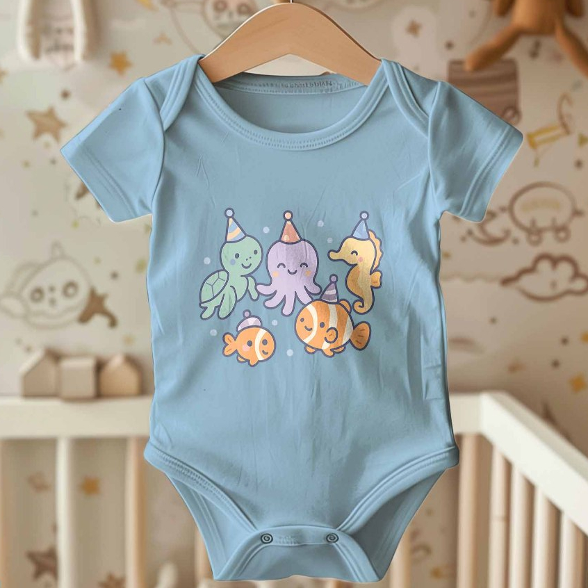 Body Bebê Festa no Fundo do Mar | Estampa de Bichinhos Marinhos