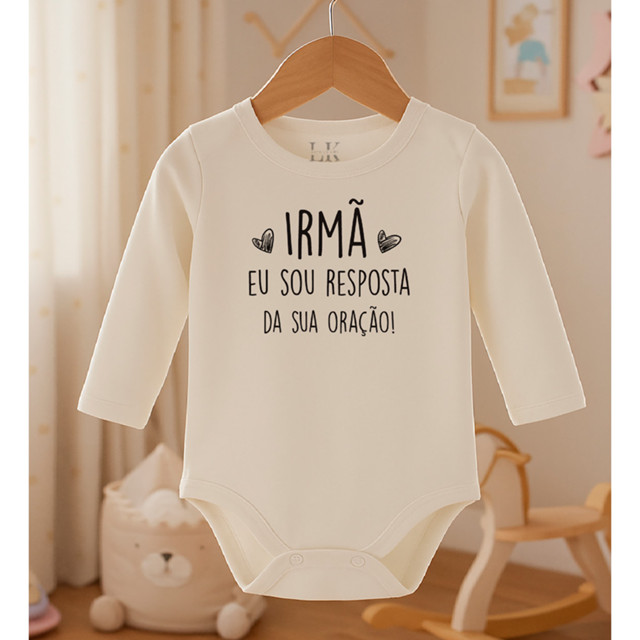 Transforme os momentos do seu bebê em memórias especiais com nosso encantador body! Feito em algodão fio egípcio, ele oferece conforto e suavidade para a pele delicada do seu pequeno. Características: Cor: Branco/Off-white Material: Algodão fio egípcio Estampa: "Irmão eu sou resposta da sua Oração" Disponível em várias tamanhos Perfeito para presentear ou para o dia a dia, esse body combina estilo e carinho. Não perca a chance de fazer o seu bebê brilhar com esse look adorável! NOSSOS DIFERENCIAIS: * Temos todas os nossos produtos à pronta-entrega; * Todas as peças são verificadas pelo nosso setor de qualidade; * Trabalhamos com fio Egípcio de qualidade que usados no tamanho correto. * Enviamos o seu produto em até 24 horas úteis; * Compras confirmadas nos dias úteis até as 12:30h serão enviadas no mesmo dia; * Acompanhamos o produto até chegar a você; * Garantimos a entrega do produto ou o seu dinheiro de volta; * Caso precise devolver, fique tranquila, o frete é por nossa conta; * Oferecemos garantia contra defeitos de fabricação. DESCRIÇÃO DO PRODUTO: Nossos Bodys Manga Longa- possuem uma costura reforçada, são perfeitos para o dia-a-dia, ou aquela combinação ideal para o passeio em um dia mais friozinho. INFORMAÇÕES ADICIONAIS: Cor: Lisa Composição: 100% Algodão. 100% Garantido GARANTIA Lacatuy Kids Contra defeito de fabricação A sua primeira troca é por nossa conta. CUIDADOS ESPECIAIS: Não alvejar Lavagem á temperatura máxima de 40 Não usar máquina secadora Passar a ferro quente com temperatura máxima de 110- Modo Algodão- Não lavar a seco A PRIMEIRA LAVAGEM, EVITE LAVAR AS CORES ESCURAS JUNTAS! ❓ DÚVIDAS FREQUENTES 📏 Como escolher o tamanho ideal? Consulte a tabela de medidas disponível nas fotos do produto. Compare com uma roupinha da criança e, se estiver em dúvida, escolha um número maior. Pode ocorrer um leve encolhimento natural (até 1,0 cm) após a primeira lavagem, o que é normal no relaxamento do tecido. 👕 A malha é grossa ou fininha? Nossa malha é 100% Algodão Fio Egípcio — de alta qualidade, toque macio e caimento impecável. Não utilizamos meia malha. É um tecido premium, que não desbota, não encolhe além do natural e não apresenta variação de cor com o tempo. 📸 O produto é igual à foto? Sim! As fotos são reais dos nossos produtos. Como trabalhamos com malha de padrão elevado e fornecedores confiáveis, não há variação de cor ou qualidade entre o que você vê e o que recebe. ⏱ Qual o prazo para envio? Pedidos com pagamento confirmado até 12h30 (de segunda a sexta, exceto feriados) são enviados no mesmo dia. 🔄 E se ficar pequeno ou grande? Posso trocar? Claro! Realizamos a troca dentro dos prazos e condições previstos no site. Fique atento às regras de troca e devolução da plataforma de compra. 🚚 Quanto custa o frete? Você pode simular o valor do frete diretamente na página do produto, clicando em "Calcular frete" acima do botão de compra. 🎨 Quais cores vou receber? As cores enviadas são exatamente aquelas que você selecionou e adicionou ao carrinho no momento da compra.