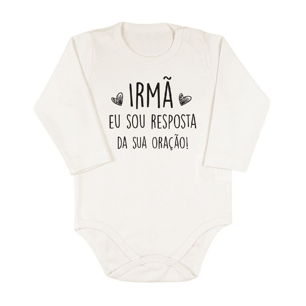 Body Bebê frase "Irmã eu sou resposta da sua Oração" 100% Algodão Fio Egípcio