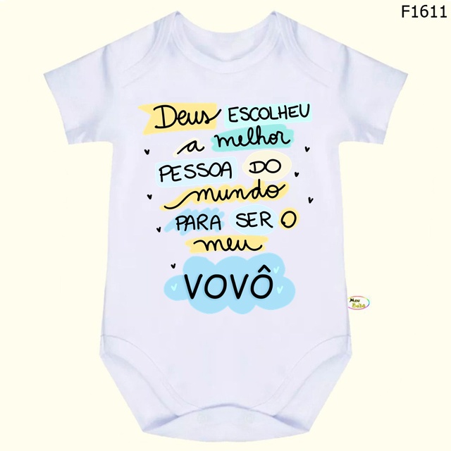 Catalogado na subcategoria Bodys e Macacões (de Moda Infantil), Body Bebê Frases Deus Escolheu a Melhor Pessoa do Mundo Para Ser o Meu Vovô SF1611 está à venda na Shopee Brasil por R$ 26,99. Nota 5.0 de 5 na Shopee e 8 unidades vendidas, este produto se destaca pelo excelente custo-benefício.