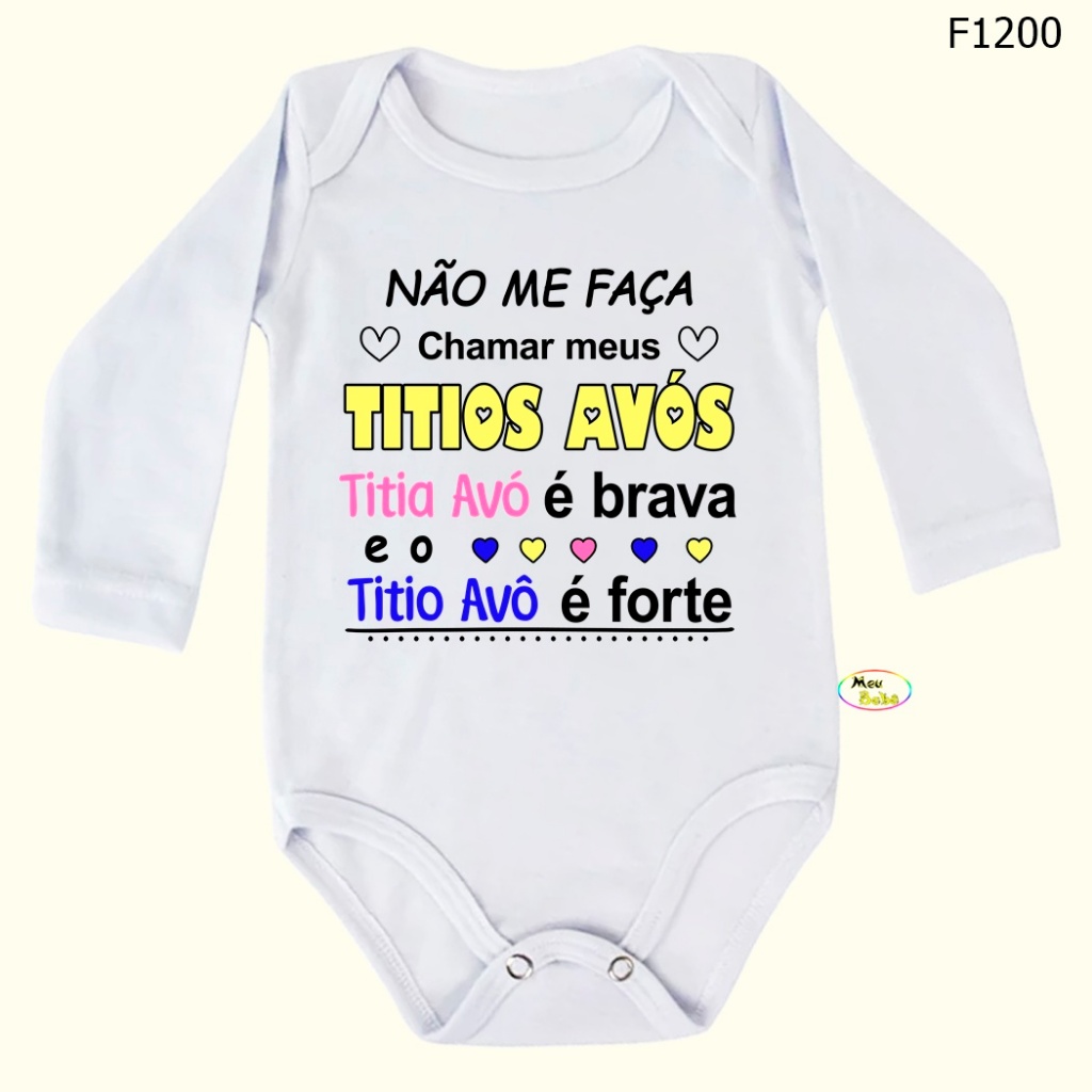 Body Bebê Frases Não Me Faça Chamar Meus Titios Avós Titia Avó é Brava e Titio Avô é Forte SF1200