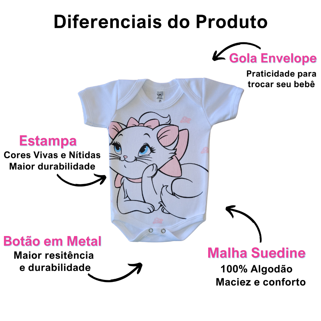 Body Bebê Gatinha Marie Personagem Infantil Recém Nascido Fantasia Bori Bore 100% Algodão Calcinha Bunda Rica Roupa Bebê