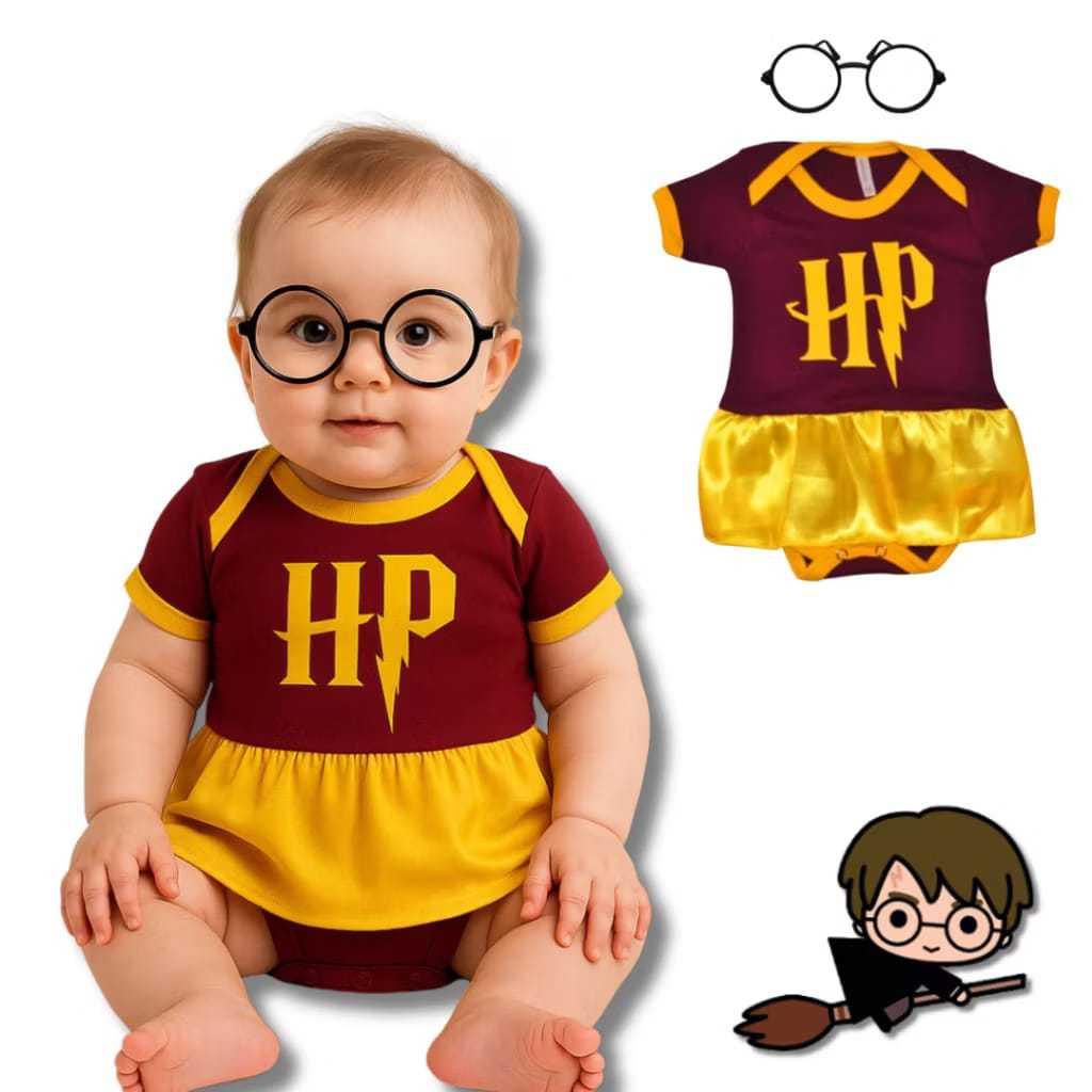 Body Bebê Herry Potter Body + Oculos Mesversario Fantasia Temática