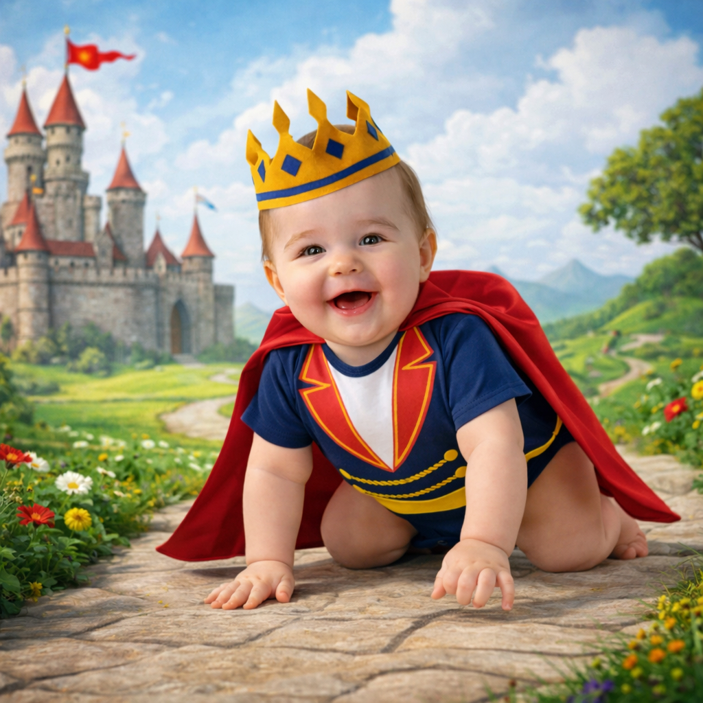 Body Bebê Infantil Mêsversário Temático Do Principe - Manga Curta, Suedine 100% Algodão