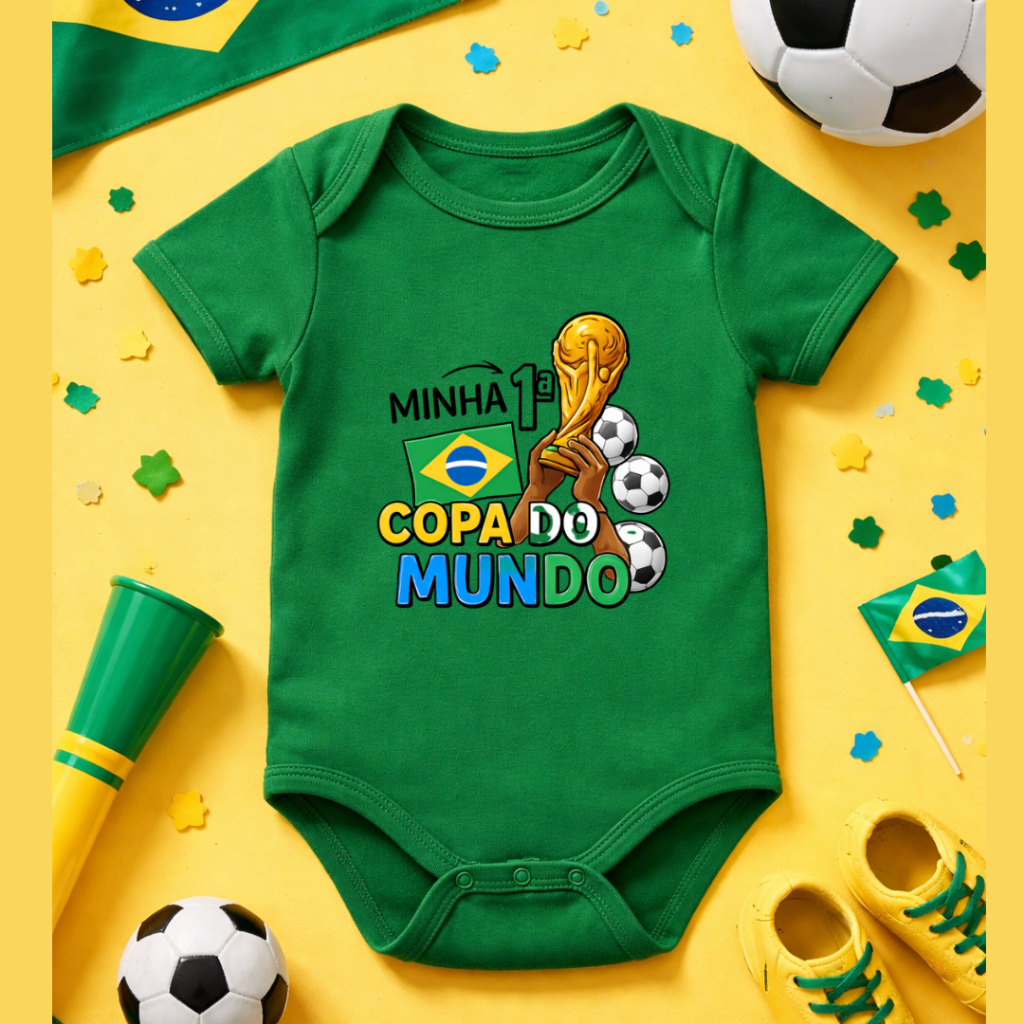 Body Bebê Infantil Unissex Minha primeira Copa do Mundo taça Brasil Times de futebol