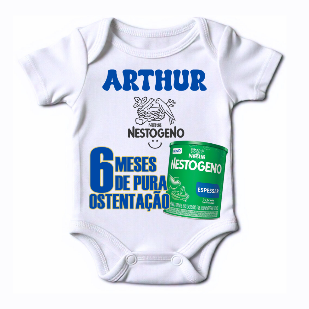Body Bebe Leite Nestogeno personalizado com nome e mes tema Lata Nestogeno menino e menina