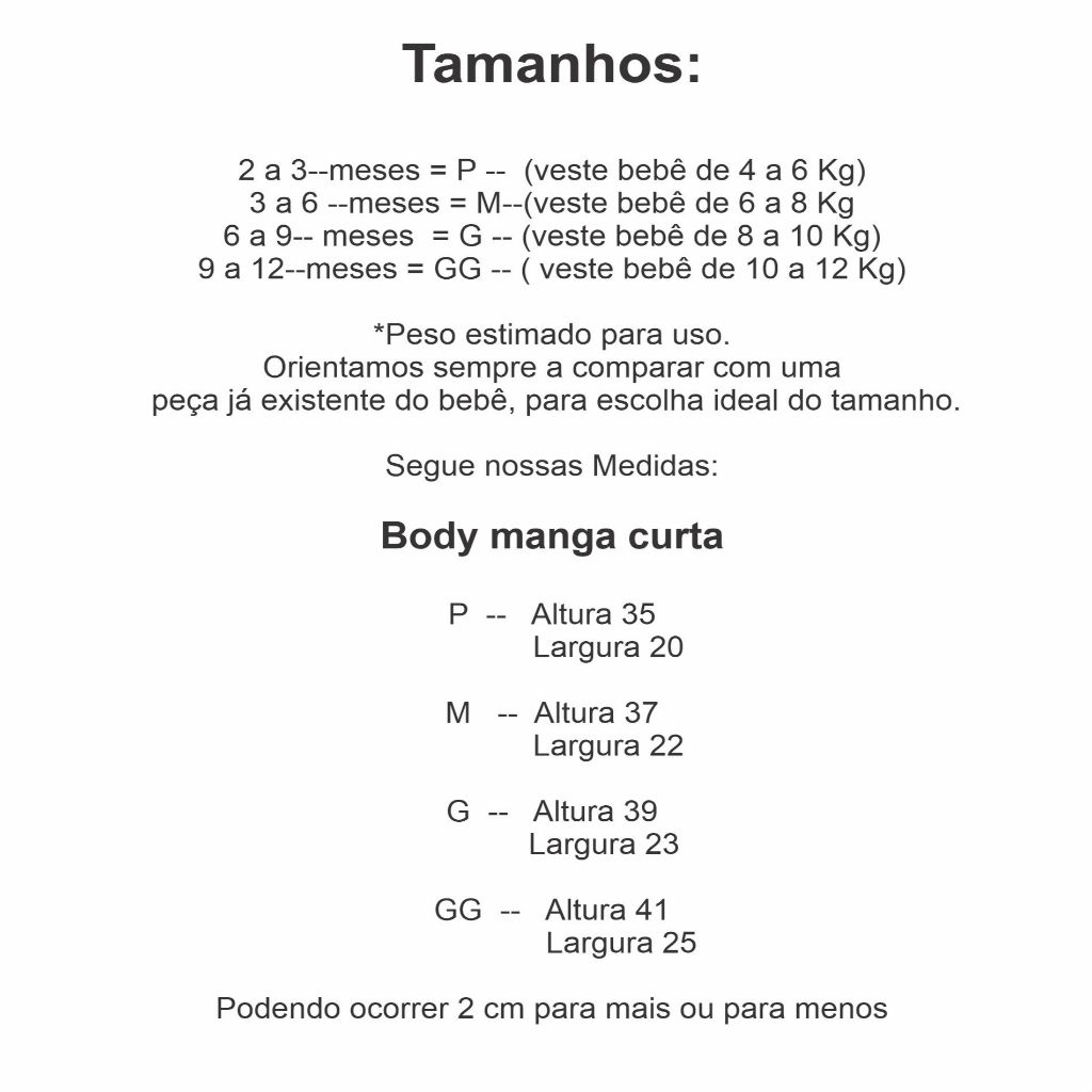 Especificações do Body: Tecido: Malha 100% Poliéster Cor: Branca Estampa Sublimada Toque macio e confortável, Excelente Qualidade e Durabilidade, Estampa não deixa Relevo, Pois penetra diretamente nas fibras do tecido, Não desbota e não racha. Tamanho aprox. do Body: - Utilize as medidas nas fotos do anúncio para escolher o tamanho desejado, Dúvidas estamos à sua disposição!