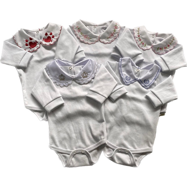 Body bebê manga longa gola bordada