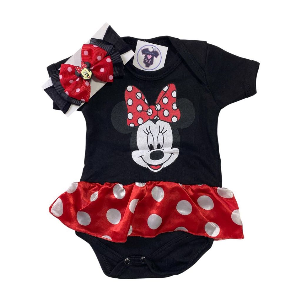 Body Bebê Menina Minie + Laço + Saia Tutu - Mesversário Temático