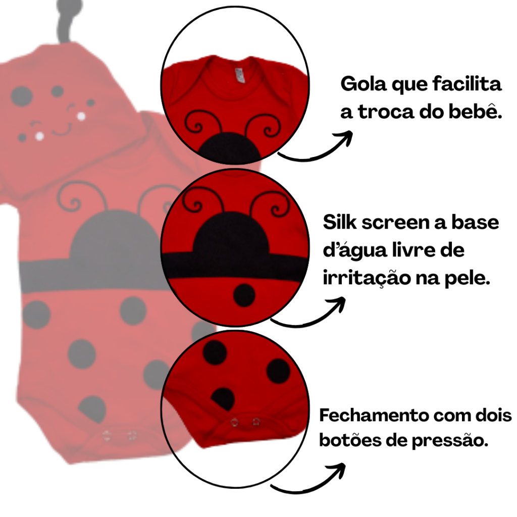 Body bebe Menina Temático Mêsversario Bichinhos - Joaninha 100% Algodão