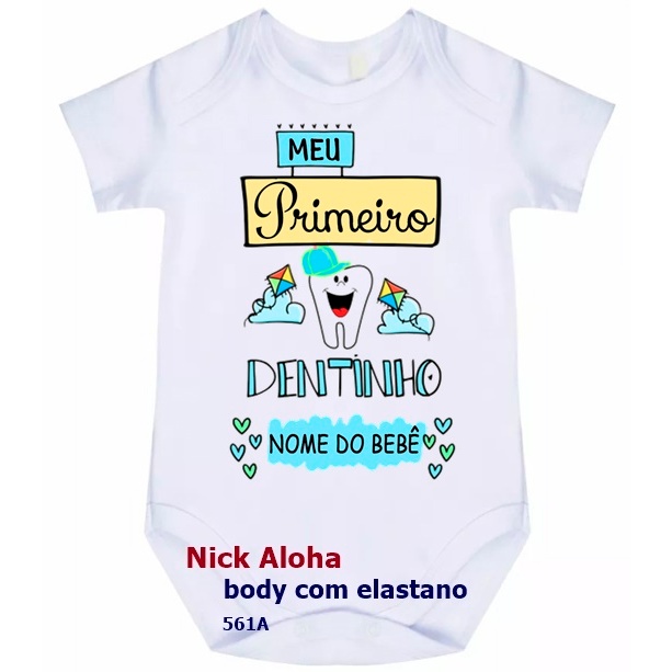 BODY BEBÊ MEU PRIMEIRO DENTINHO COM NOME DO BEBÊ 561A integra a oferta da Shopee Brasil na subcategoria Bodys e Macacões (de Moda Infantil) por R$ 27,00. Com avaliação de 5.0 de 5 estrelas e 9 unidades vendidas, este produto se destaca pelo excelente custo-benefício.