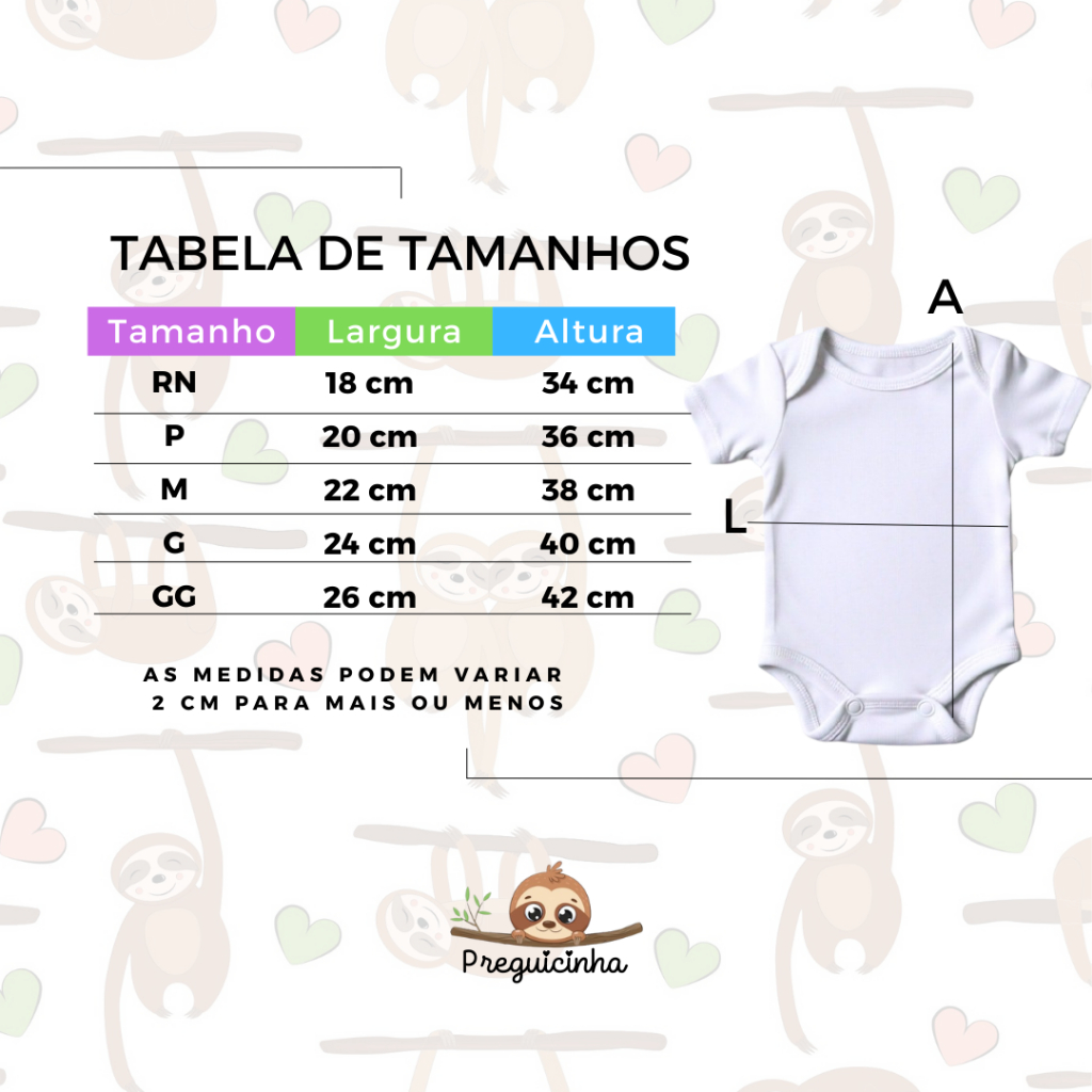 Envie o Nome e Mês no chat imediatamente após efetuar a compra, pois temos prazo para postagem, e caso não enviar vai somente com o desenho! Boby Bebê proprio para comemorar Mesversario Verificar Tabela de Tamanhos nas imagens, por se tratar de um produto personalizado não trocamos por erro de Tamanho. MEDIDAS: RN= Altura 34 X Largura 18 P = Altura 36 X Largura 20 M = Altura 38 X Largura 22 G = Altura 40 X Largura 24 GG= Altura 42 X Largura 26 Obs.: Nas medidas informadas, podem ocorrer variações de até 1,0 cm para mais ou para menos. >Body em Malha Fria de Helanca Branco e super fresquinho para o seu bebê. >Gola Envelope Veste Fácil. >Fechamento por botões de pressão, o que facilita a troca de fraldas. >Estampas de alta qualidade (não desbota e não racha). INFORMAÇÕES DO PRODUTO Material: Helanca Cor Disponível: Branco Body para Bebe Manga Curta e Longa Super macio e confortável. Peça o seu e se apaixone ; )