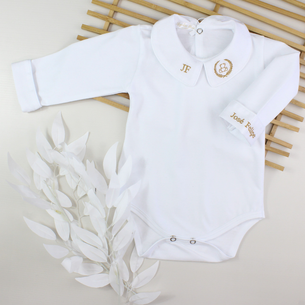 Body Bebê Personalizado Menino 100% Algodão Bordado Nobre. Body Bebê Personalizado em malha penteada fio 30.1 100% algodão premium, possui gola bordada com o nome do bebê e ursinho, trazendo delicadeza e beleza para o body, além de apresentar fechamento com botões de pressão entre as perninhas e na parte de trás da gola. Por ser um produto feito com malha 100% algodão antialérgico, nossos bodies contribuem para o conforto do seu bebê em todos os momentos, evitando alergias e problemas respiratórios futuros. É possível escolher a cor do body e o bordado do seu gosto mamãe, só entrar em contato e mandar a sugestão . COMPOSIÇÃO DO PRODUTO: Body Bebê Personalizado Menino 100% Algodão Bordado Nobre. Confeccionado Em Malha Penteada Fio 30.1 . Body Personalizado 100% Algodão. Gola bordada com nome do bebê. Botões De Pressão entre as pernas para facilitar encaixe no Bebê. CARACTERÍSTICAS Categoria: Body Bebê Personalizado Menino Manga: Longa Cor: Branca Composição: Malha Penteada 100% Algodão Gênero: Bebê Menino Marca: Algodão Doce Ateliê Quantidade de peças: 01 peça INSTRUÇÕES DE LAVAGEM DO PRODUTO: - Lavar à mão. - Não alvejar. - Secar à sombra. - Não limpar a seco. - Não colocar em máquina de secar. - Usar sabão neutro. - Não deixar de molho. Medidas deste produto fofo: Tamanho Comprimento (cm) Largura (cm) 0 à 1 mês 29 18 1 à 3 meses 30 20 3 à 6 meses 31 22 6 à 9 meses 33 25 9 à 12 meses 34 27 BENEFÍCIOS DO ALGODÃO PARA A PELE DO BEBÊ: A pele do bebê é delicada e sensível, e por isso é de extrema importância que os tecidos das roupinhas dos pequenos seja confeccionada com materiais antialérgicos, e foi pensando nisso que o Ateliê Algodão Doce escolheu a Malha Penteada Fio 30.1 100% Algodão para a produção dos Bodies Personalizados para bebê, que com sua fibra suave e respirável permite a troca de ar entre a pele e o ambiente externo, evitando alergias e a proliferação de fungos e bactérias, além de reter o suor do bebê mantendo a pele sequinha. O Ateliê Algodão Doce, durante todos os seus anos de funcionamento, busca sempre tornar a experiência dos clientes a mais satisfatória possível, com o intuito de transferir um pouco do significado do amor de mãe em seus produtos, selecionando e produzindo com as melhores matérias primas, visando a qualidade das peças e conforto do seu bebê ❤️. ATENÇÃO: NÃO FAZEMOS TROCA OU DEVOLUÇÃO DE PRODUTOS PERSONALIZADOS COM NOME OU INICIAL DO BEBÊ.