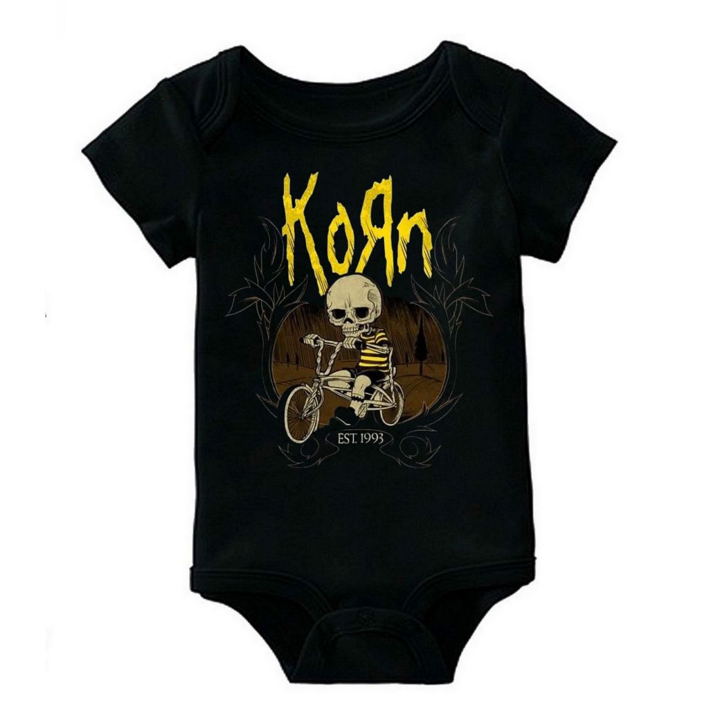 Body Bebê Rock Korn Caveira | Roupinha Roqueiro Infantil | Mesversário Rock | 100% Algodão Premium