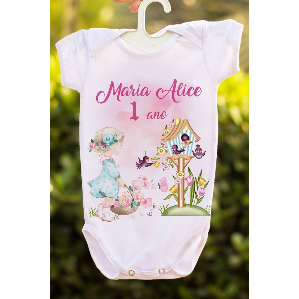 Body bebê roupa infantil mesversario jardim encantado