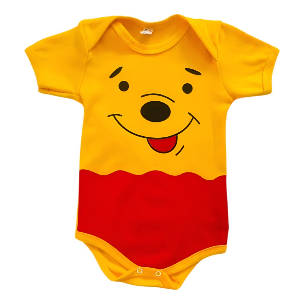 Body Bebê Tématico + Boina Ursinho Pooh Mêsversario Fantasia Menino