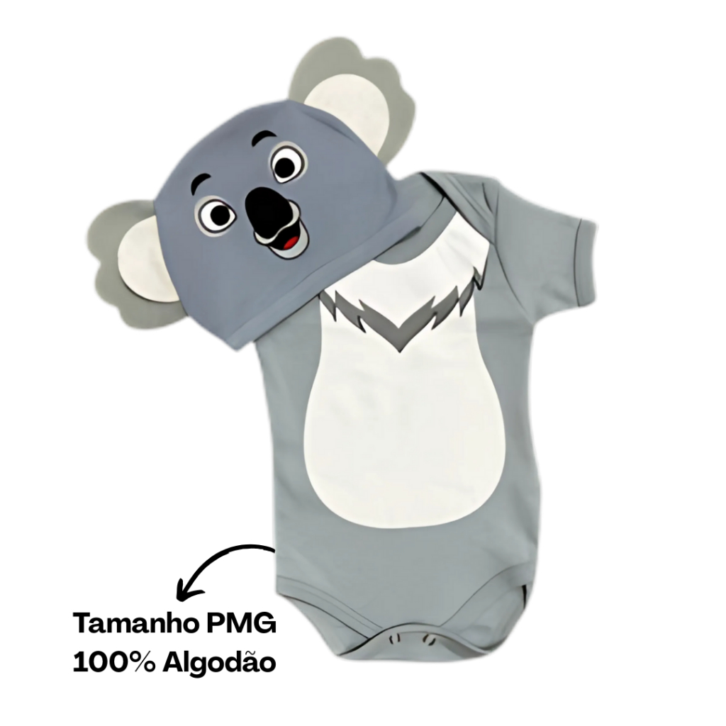 Body Bebe Temático Mêsversario Fantasia de Bichinhos - Coala