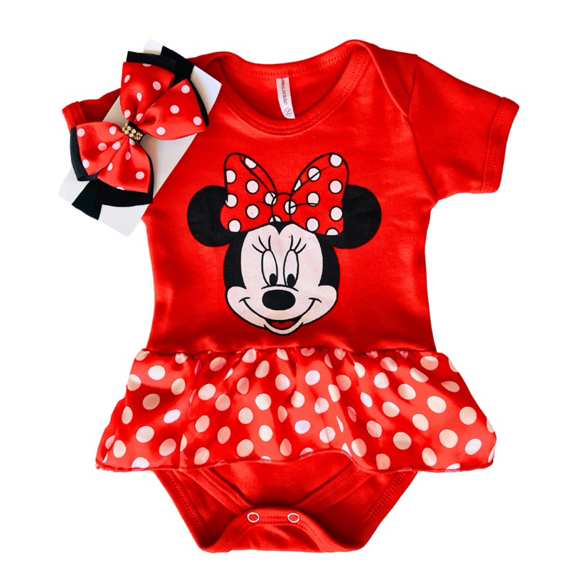 Body bebê temático Minnie mesvesário infantil Menina + laço +Tule