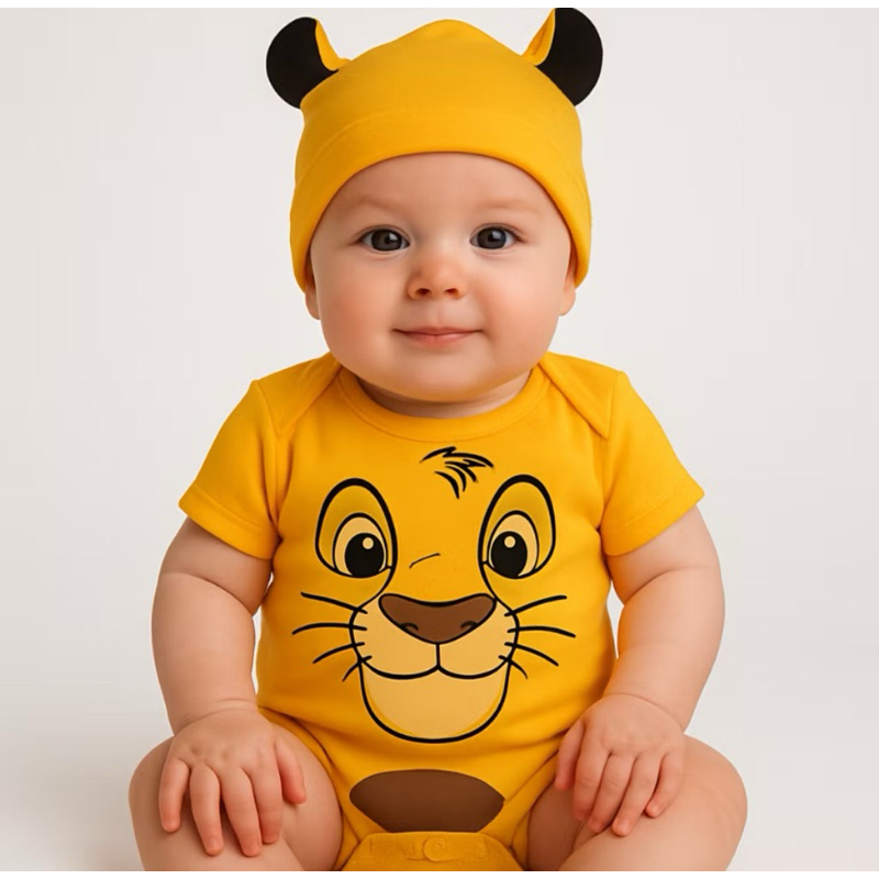 Body bebê- Temático Rei Leão Simba com Touca