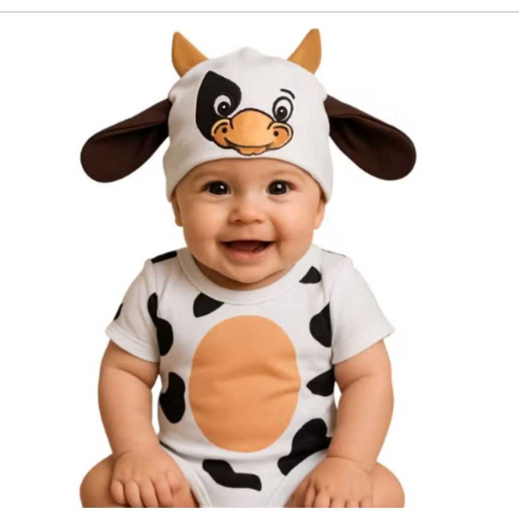Body Bebê Temático Vaquinha Bezerro Fazendinha Mesversario Animais– 100% Algodão, Manga Curta