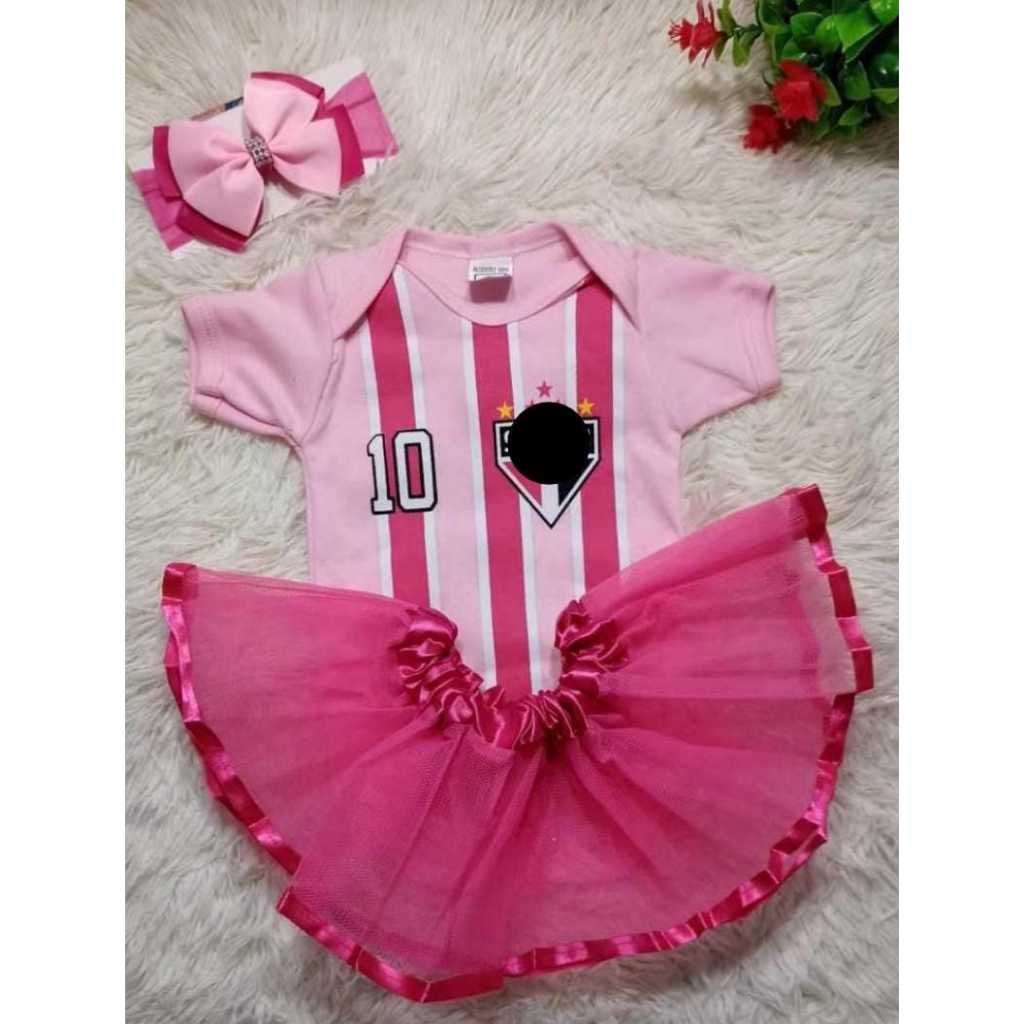 Body Bebê Time tricolor de sp Saia de tule + laço Temático Menina Mesversario Fantasia