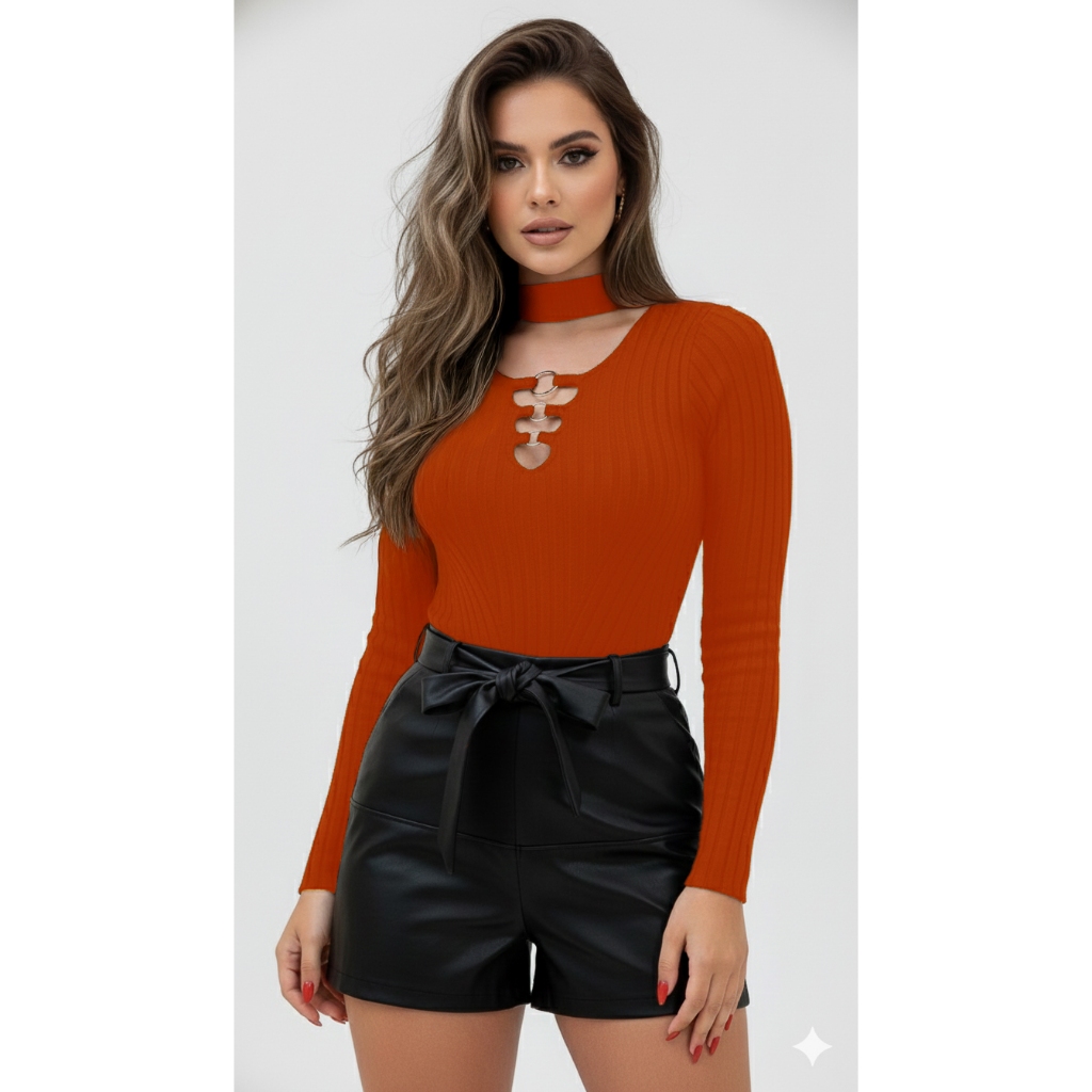 Body Blusa Blusinha Manga Longa Gola Choker Roupas Femininas