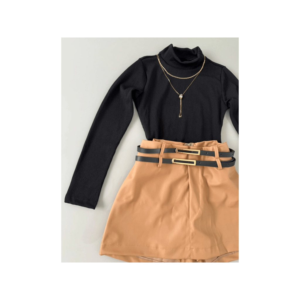 Body Blusa Com Gola Alta Manga Longa Canelada Justa Basica