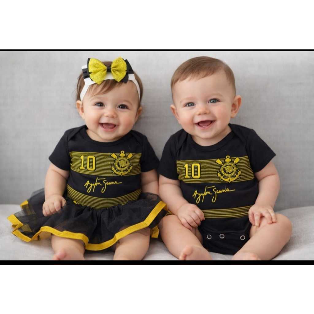 Body Corinthians Infantil Menino e Menina Time do Coração Algodão Macio com Laço Saia Tule ou Boina