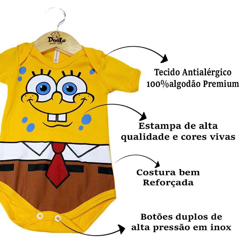 Bem-vinda(o) à DooLu Baby Kid's – Onde o conforto encontra o carinho em cada detalhe! Apresentamos nosso Body Temático Do Bob esponja para seu Bebê, uma peça pensada com muito amor para deixar seu pequeno ainda mais confortável, protegido e estiloso. Confeccionado em suedine 100% algodão premium, esse body é macio como um abraço de mãe. O tecido, de toque suave e delicado, é perfeito para a pele sensível do bebê e ideal para o uso no dia a dia. Além de ser respirável e manter a temperatura agradável, ele tem alta durabilidade: mesmo após muitas lavagens, continua com o mesmo caimento, cor vibrante e toque macio. Funcionalidade também é carinho! O fechamento em botões de pressão facilita (e muito!) a hora da troca de fraldas, tornando tudo mais prático para você e confortável para o seu bebê. Confira a tabela de medidas na última foto do anúncio e encontre o tamanho ideal. ( pode variar de acordo com a estatura do bebê) Cuide com carinho para durar ainda mais: Lave à mão ou no ciclo delicado, separadamente Use sabão neutro e água fria Evite alvejantes Não passe o ferro sobre a estampa (silk) Cada peça da DooLu Baby Kid’s é criada com dedicação, carinho e atenção aos detalhes, porque sabemos que o seu bebê merece o melhor desde os primeiros dias de vida. DooLu Baby Kid’s – fazendo parte dos momentos mais especiais da sua família. Tamanhos disponíveis: P (0 a 3 meses): 36cm x 20cm M (4 a 7 meses): 38cm x 22cm G (8 a 12 meses): 40cm x 24cm