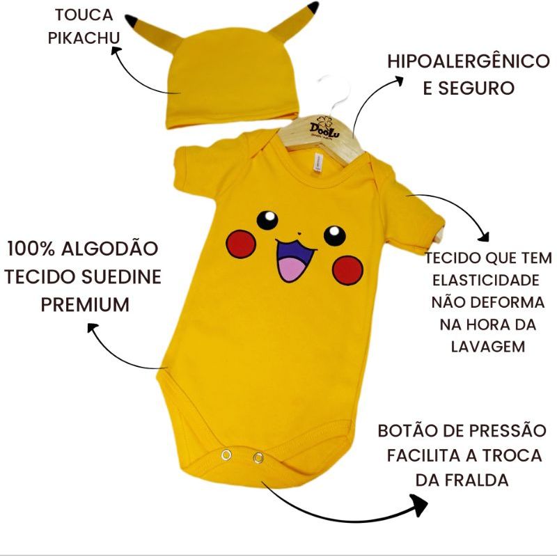 Body de Bebê Pikachu + Touca / Body Temático Mêsversario Pokémon