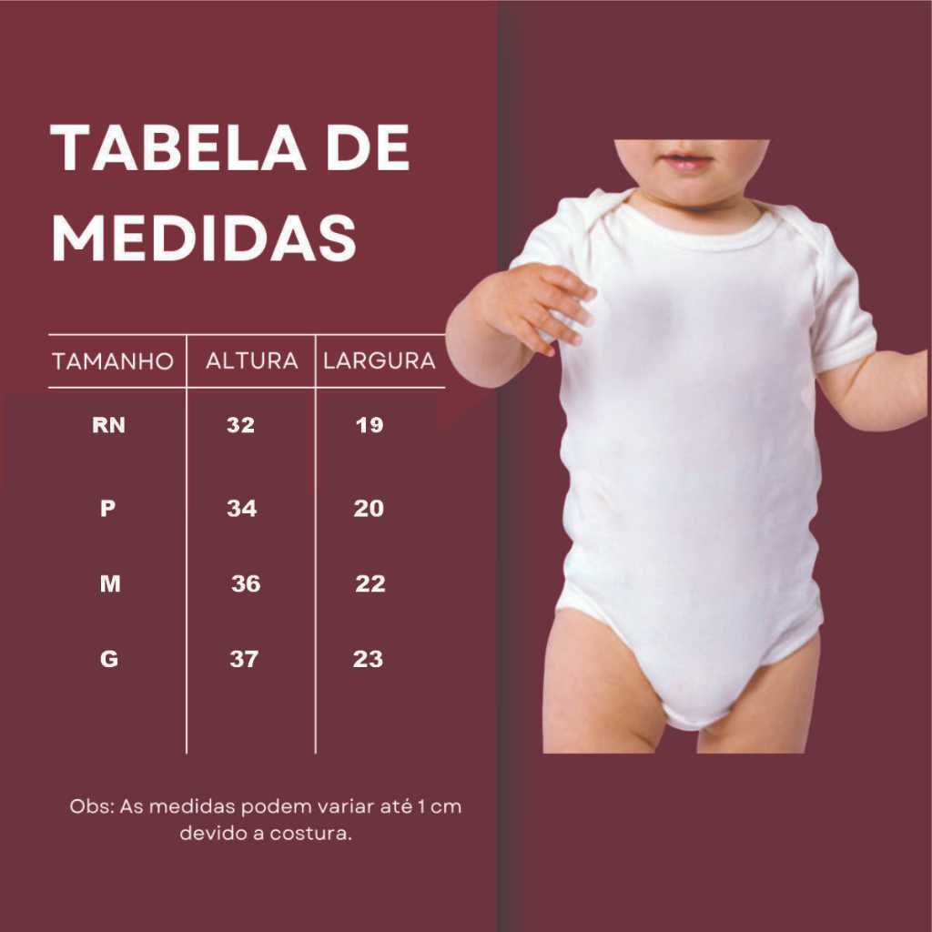 Body de Bebê Temático Mesversário Menino Menina Tema Páscoa Nossos Body´s com estampas e frases divertidas para meninos e meninas, bem coloridos ,confortáveis com tecido macio para não agredir a pele do bebê. Gola que facilita a troca por baixo ou por cima tornando-o mais prático. Fechamento entre pernas com botão de pressão. Ideal para Mesversário , para uso do dia e para passeios com a familia. Confeccionado em malha 96%Poliester 4% Elastano Estampa Impressão Digital. (Obs. Existe uma variação natural de tons de cores durante o processo de impressão, podendo variar até 10% para mais ou para menos). Instruções para lavagem * Lavar a mão * Não usar alvejantes * Secar à sombra * Não deixar de molho * Passar do avesso * Não usar máquina de lavar ou secadora. Tamanhos Largura Comprimento RN 19 cm 32 cm P 20 cm 34 cm M 22 cm 35 cm G 23 cm 37 cm ( Caso tenha alguma dúvida a respeito do tamanho sugerimos que compre um número maior) Caso tenha alguma dúvida, fique a vontade para nos enviar mensagem, estaremos a disposição para lhe responder. Obrigado pela compra !!