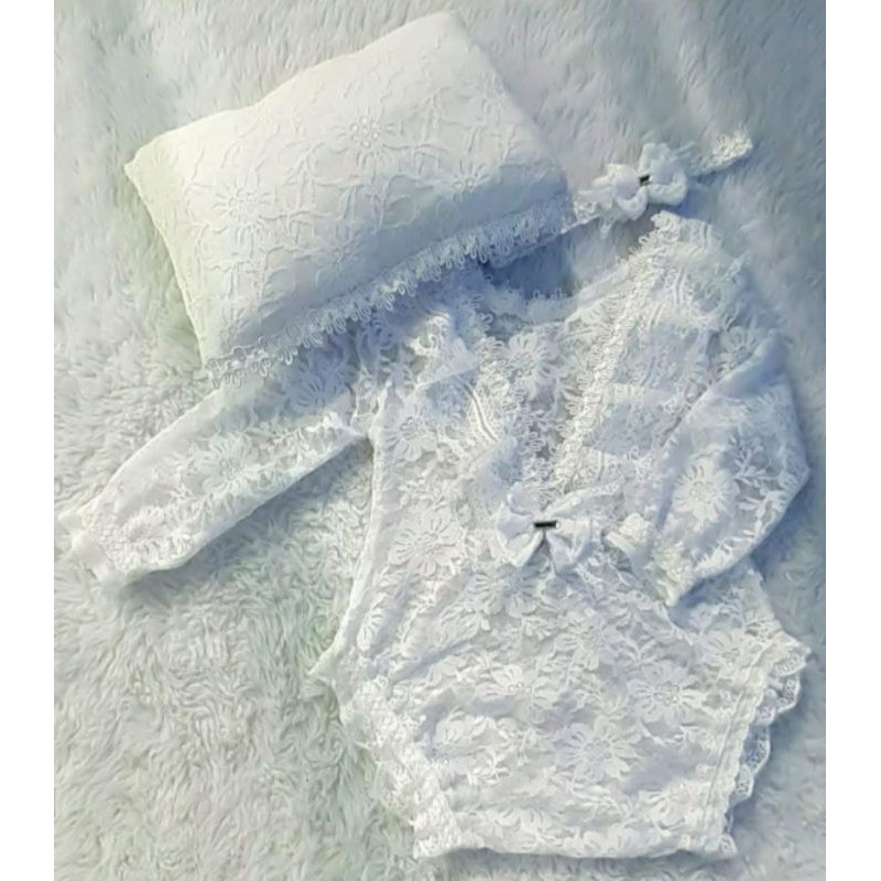 body de renda branco + travesseirinho roupa Newborn bori bore roupinha roupa romper ensaio fotográfico acompanhamento