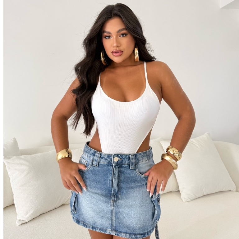 Body Ely Alça Fina Cavado Costas Nua Com Bojo Moda Blogueira Versátil