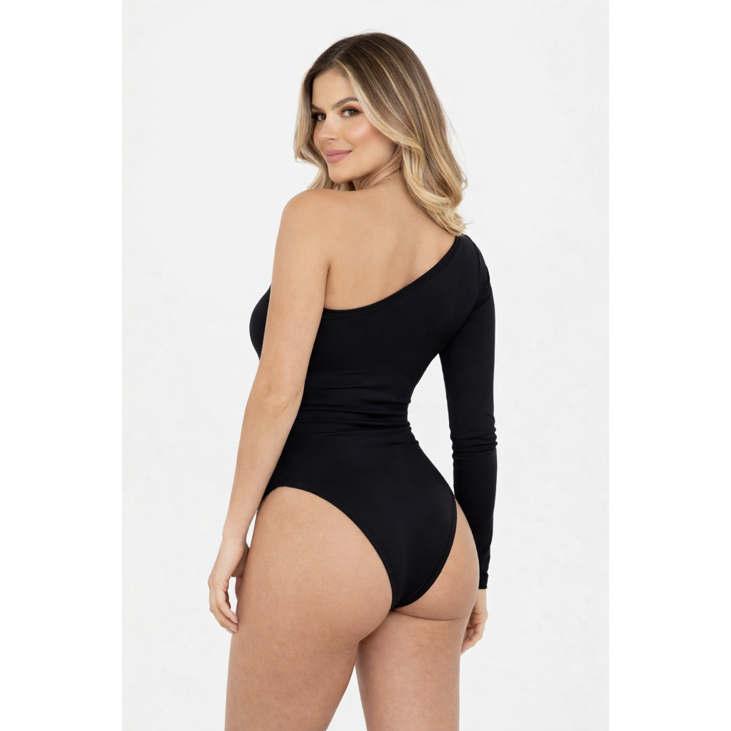 Body Feminino Básico Um Ombro Só Manga Longa Malha Viscolycra
