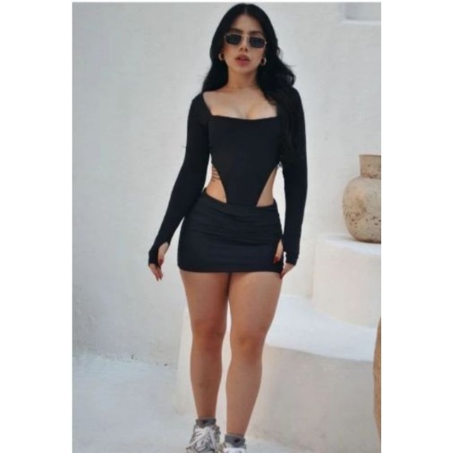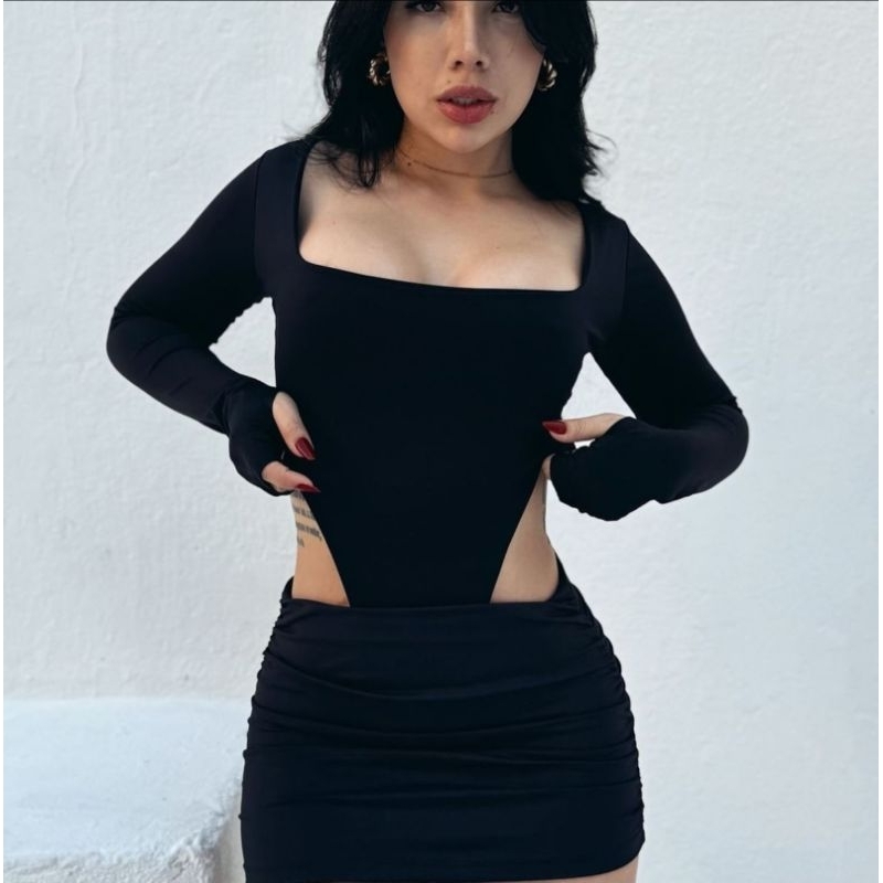body feminino lorena , body e saia suplex body manga longa, body cavado, conjunto body mais saia