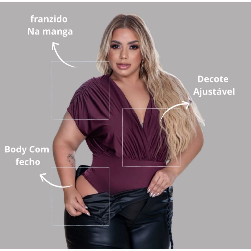 | Body Feminino Plus Size Suplex Manga Morcego com Franzido Elegante ... este produto | R$ 38,80 | 35% | 4.8/5 | 308 |