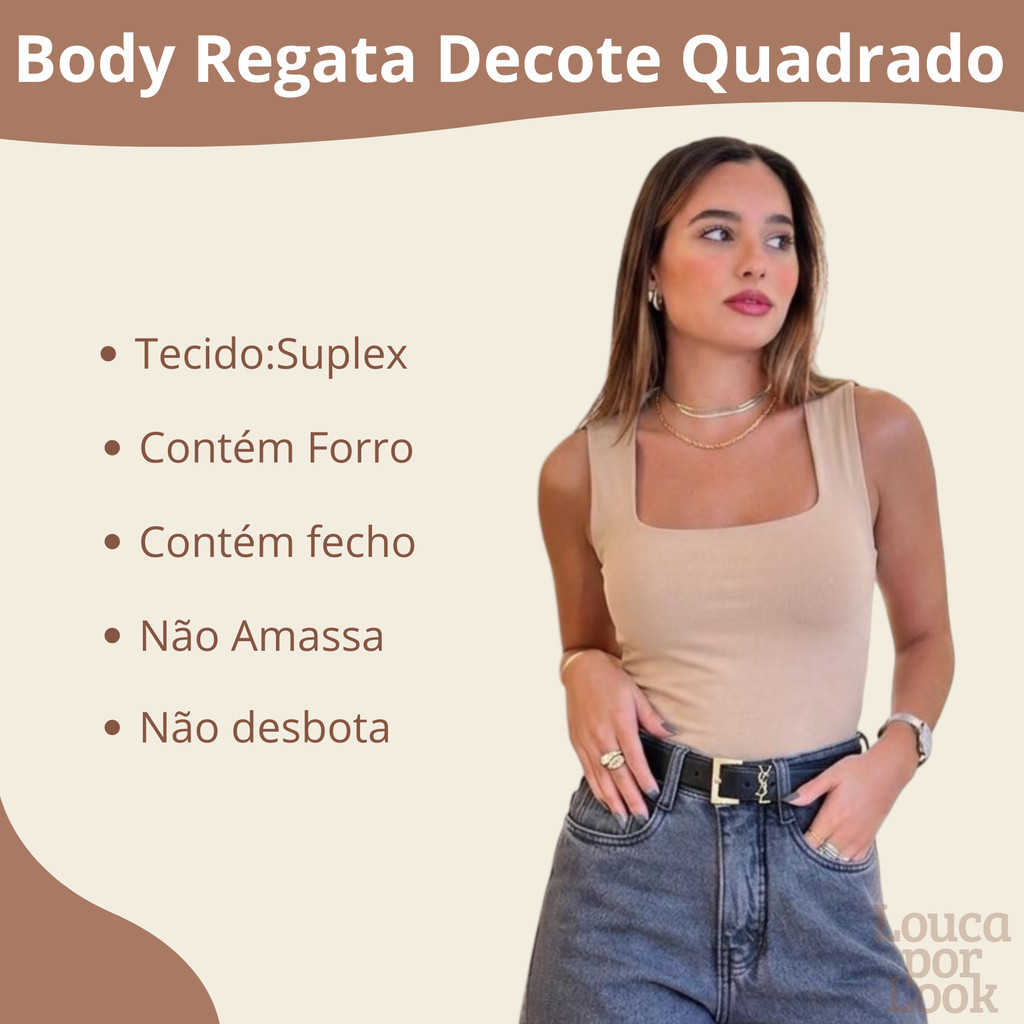 Body Feminino Suplex Decote Quadrado Alça Larga com Forro Collant Casual Moda Blogueira Estilo Verão