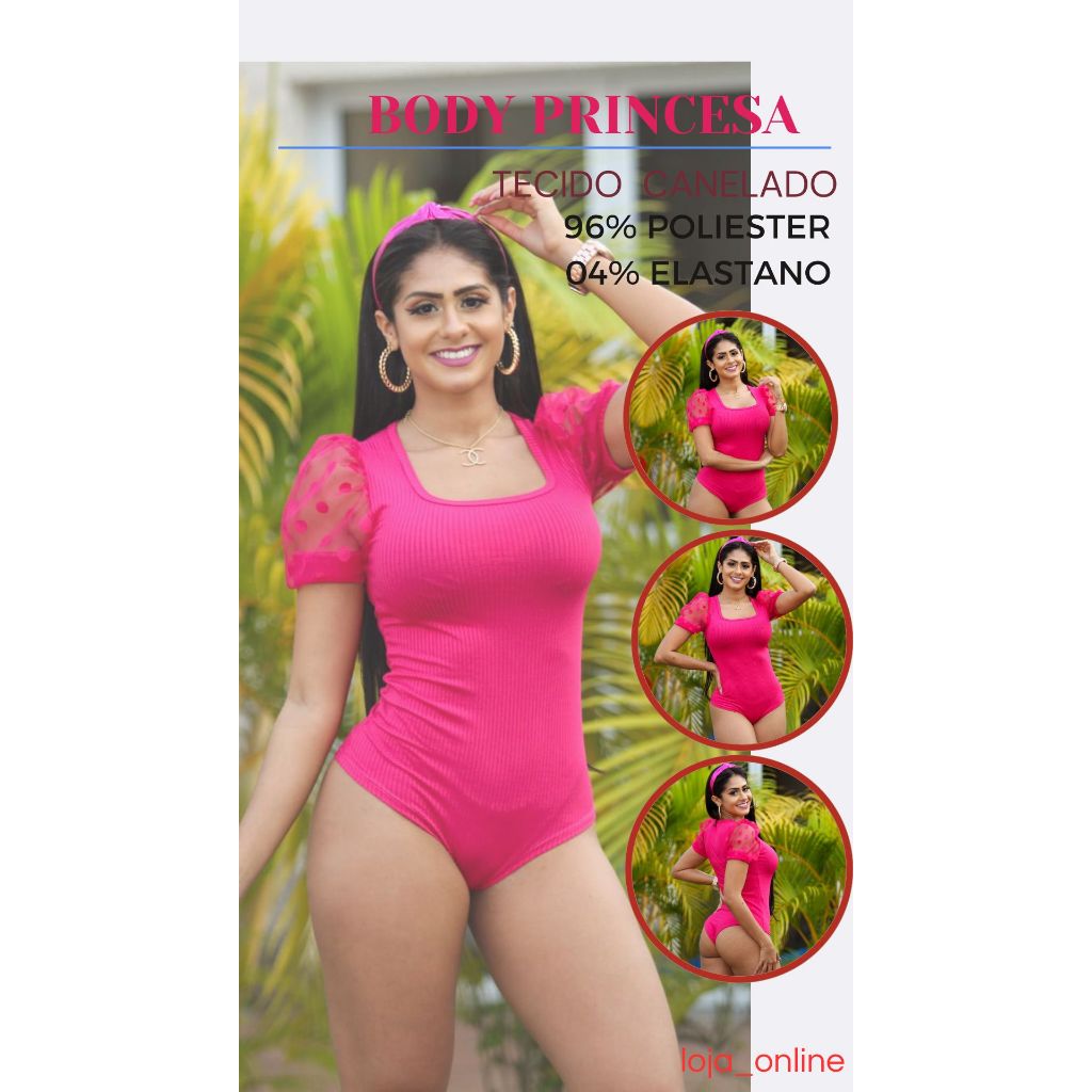 | Body feminino verão manga curta tule princesa canelada este produto | R$ 33,92 | 15% | 4.9/5 | 8 |