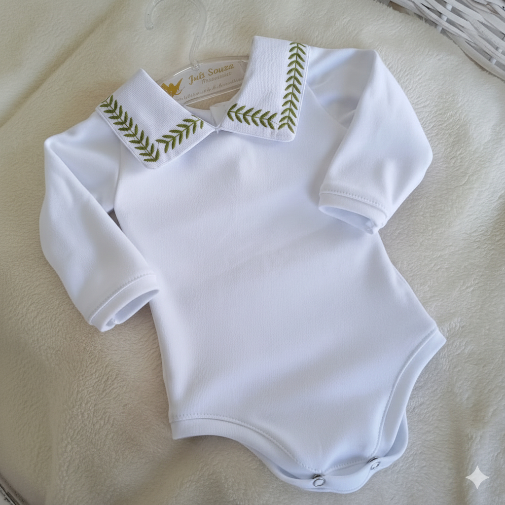 Body com gola bordada em ramos ( enviar a cor do bordado via chat) Tecido suedine 100% algodão Body manga longa Tam P de 0 a 3 meses Ideal para presentear aquela mamãe e bebê tão especial.