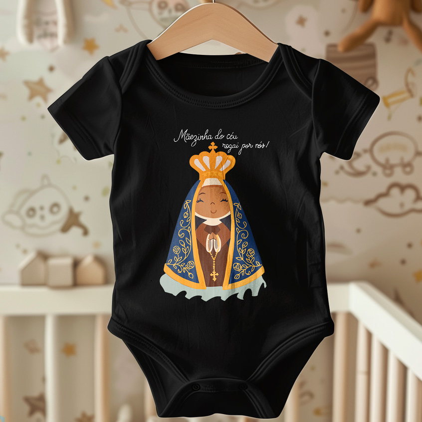 Body Infantil Nossa Senhora Aparecida | Estampa Religiosa Católica Cristã