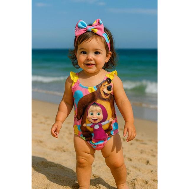 Body Maiô Infantil Marsha e o Urso Biquíni Suplex Menina Bebe