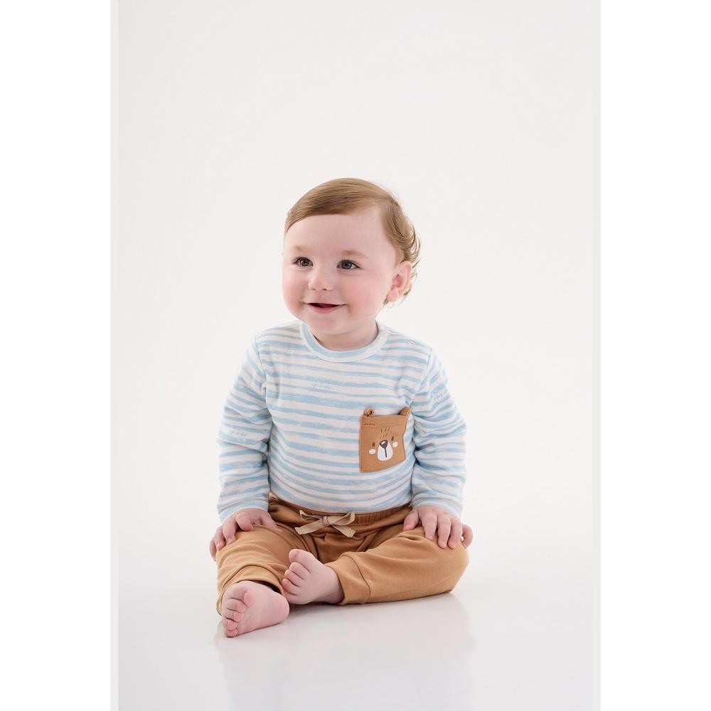 Body comfy para bebê menino, produzida em suedine. Possui mangas longas, gola redonda com abertura por botão de pressão no ombro, bolso estampado no peito com detalhe aplicado e abertura por botões de pressão entre as pernas.Tecido: Body: SuedineComposição: 100% AlgodãoModelagem: JustaComprimento Manga: LongaForro: NãoCintura: MédiaDecote/Gola: RedondoFechamento: Botões de Pressão