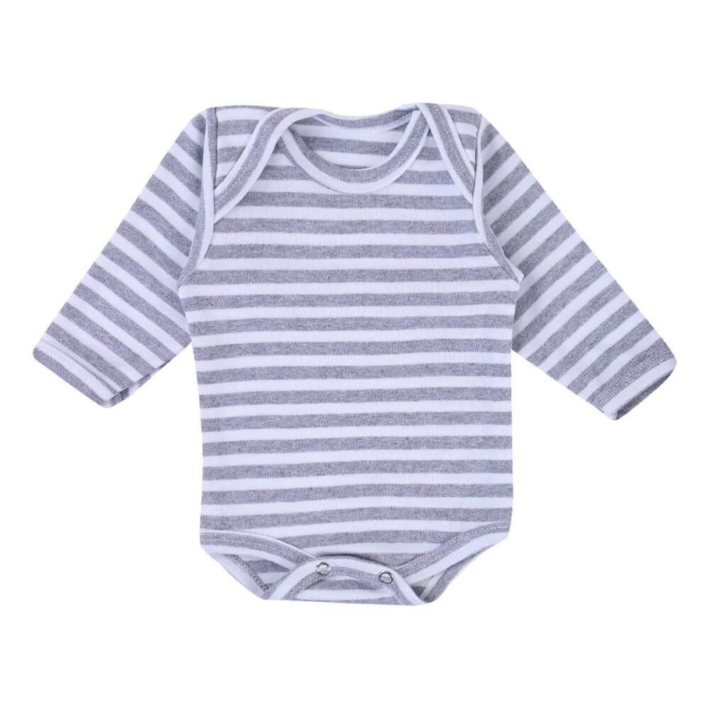 Body Menina Menino - Body Bebê Manga Longa Listrado Suedine Canelado Unissex RN ao G 0-12 Meses Top Chot