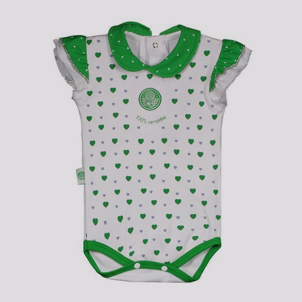 Garanta todo conforto e estilo alviverde para sua pequena Palmeirense com o body feminino do Palmeiras. Confeccionada em algodão, a peça proporciona toque macio e extremo conforto ao bebê. Além disso, a gola é estilo peter pan, verde e possui abertura com abotoamento na parte traseira. Já na região frontal, o escudo da equipe marca presença, bordado no centro do tórax. Com design predominantemente branco, apresenta pequenos corações em verde e azul, estampados por toda a peça. A cor verde é vista também nos babados, localizados nas mangas e na barra. Conta também, com os dizeres "100% Verdinho" na região frontal. Por fim, o ajuste com botões entrepernas se encarregam da praticidade no dia a dia.Composição: 100% AlgodãoAjuste: BotõesBolso: NãoEscudo: BordadoGola: Estilo Peter PanForro: NãoManga: CurtaDimensões Aproximadas (A x L):02 A 04 MESES - P: 38 x 22 cm04 A 06 MESES - M: 40 x 24 cm06 A 08 MESES - G: 42 x 26 cm08 A 10 MESES - GG: 44 x 28 cm