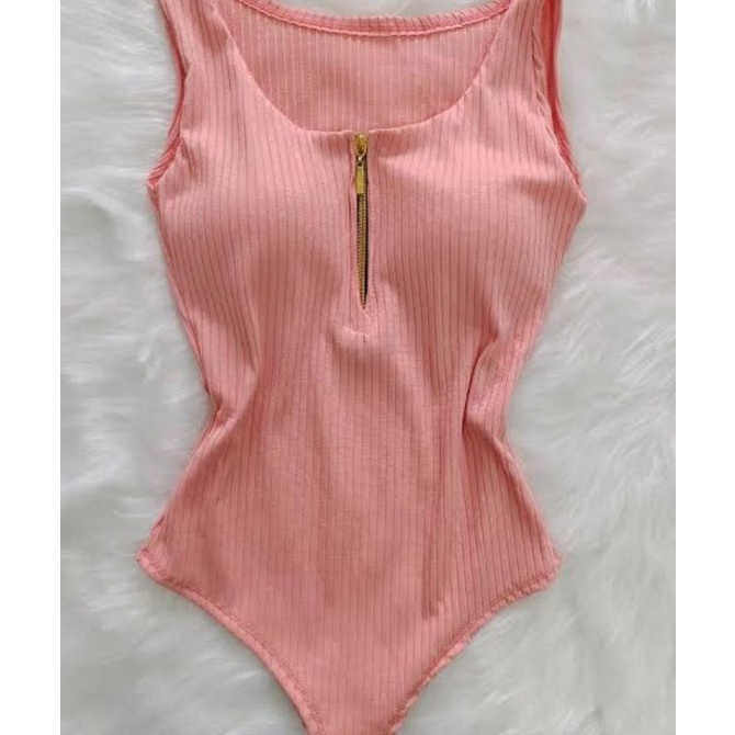 Body Regata Com Zíper Tecido Canelado Veste M G e GG