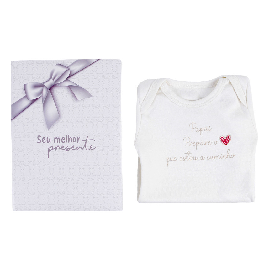 Kit Presente Kiko Baby Timeless Body Manga Curta Suedine O Kit Presente Timeless da Kiko Baby é uma opção encantadora para presentear os futuros papais. Inclui um body de manga curta confeccionado em suedine, conhecido por sua maciez e conforto para a delicada pele do bebê. O body apresenta a mensagem "Papai, prepare o coração que estou a caminho", adicionando um toque de emoção e expectativa ao presente. Além disso, o kit vem acompanhado de uma elegante caixa presenteável, tornando-o não apenas um presente prático, mas também uma lembrança memorável. Este kit não apenas proporciona um item prático para o enxoval do bebê, mas também transmite uma mensagem especial aos pais, celebrando a chegada iminente do novo membro da família. É uma maneira carinhosa de expressar apoio e compartilhar a alegria dessa jornada emocionante da paternidade. Informações Adicionais: Tamanho: RN ao P Cores: Off White Referência: 3662 Marca: Kiko Baby/Timeless