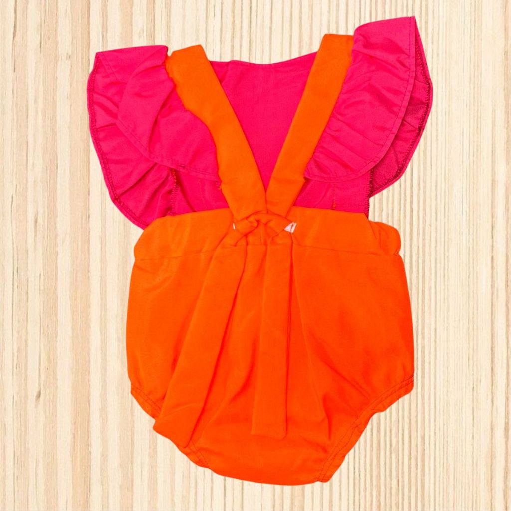Body Romper Bebê Menina Mesversário Temático Carnaval Laranja Rosa 6 a 9 meses