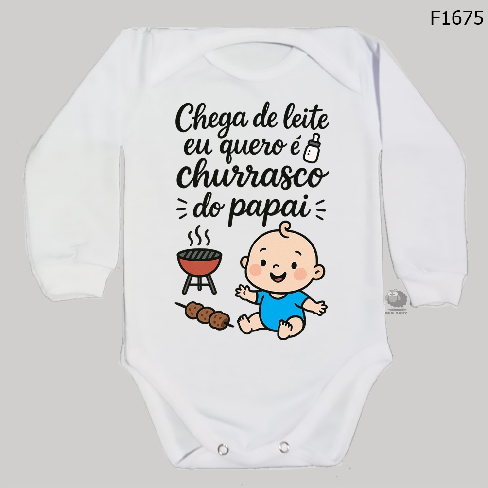 body roupa de bebê chega de leite eu quero é churrasco do papai f1675